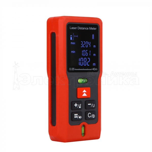 Дополнительные функции дальномера: режим непрерывного измерения, измерение максимальных и минимальных расстояний, измерение различных площадей с одним общим параметром. В памяти дальномера можно сохранять до 20 результатов измерений.